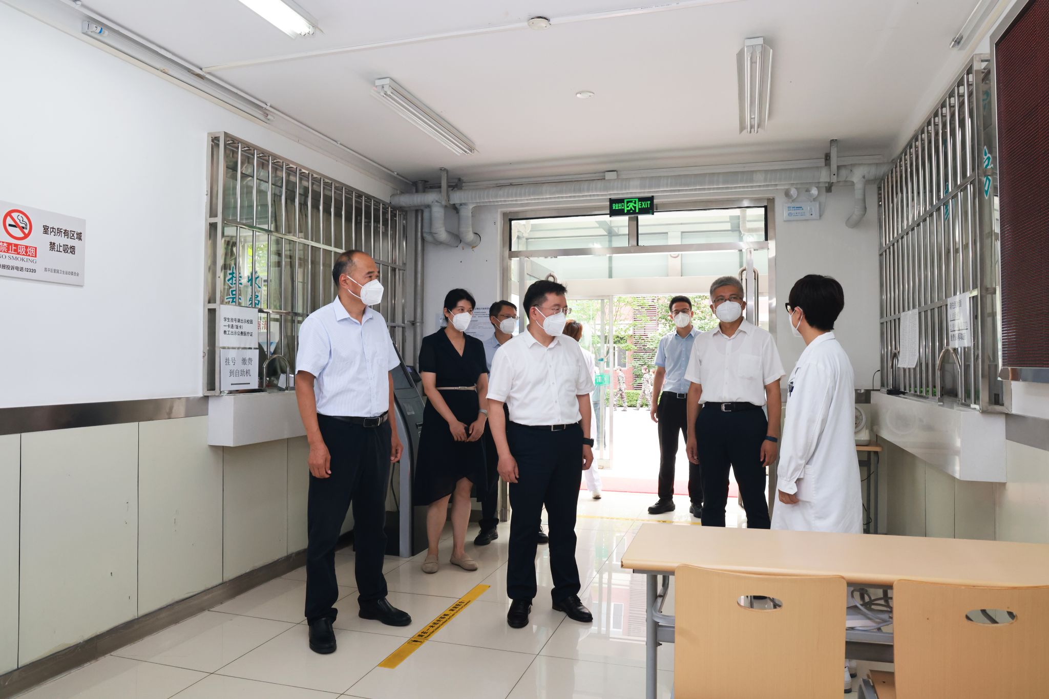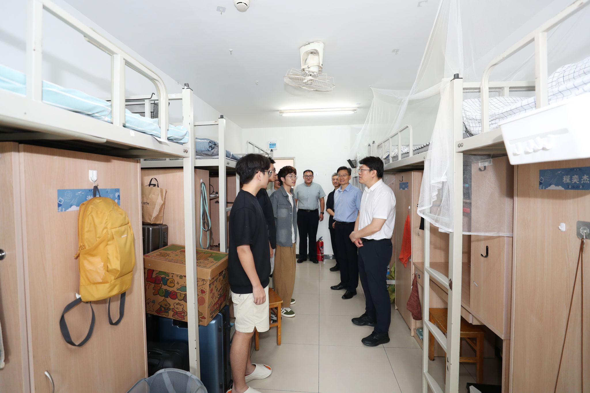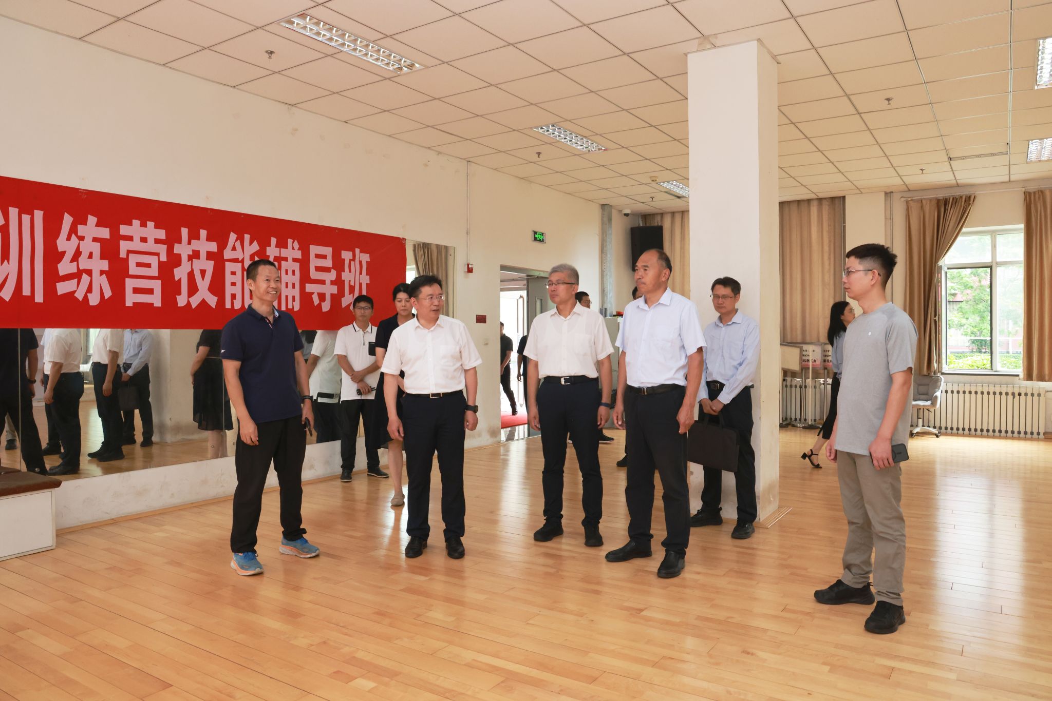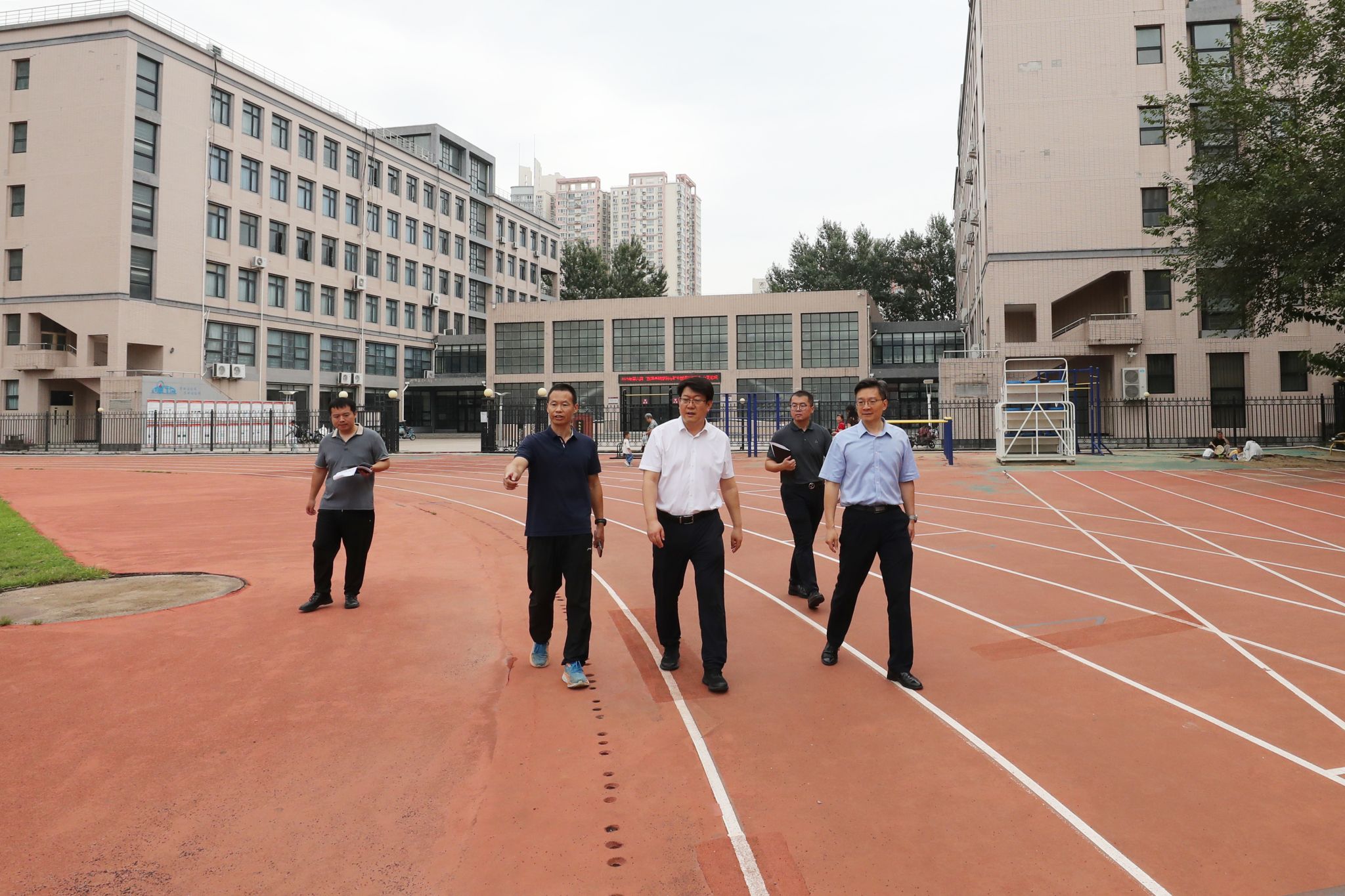 党政办公室、保卫处、学生工作处、总务处、资产与实验室管理处、沙河校区管理委员会、图书馆、校医院、体育教研部等相关单位负责人陪同参加检查。