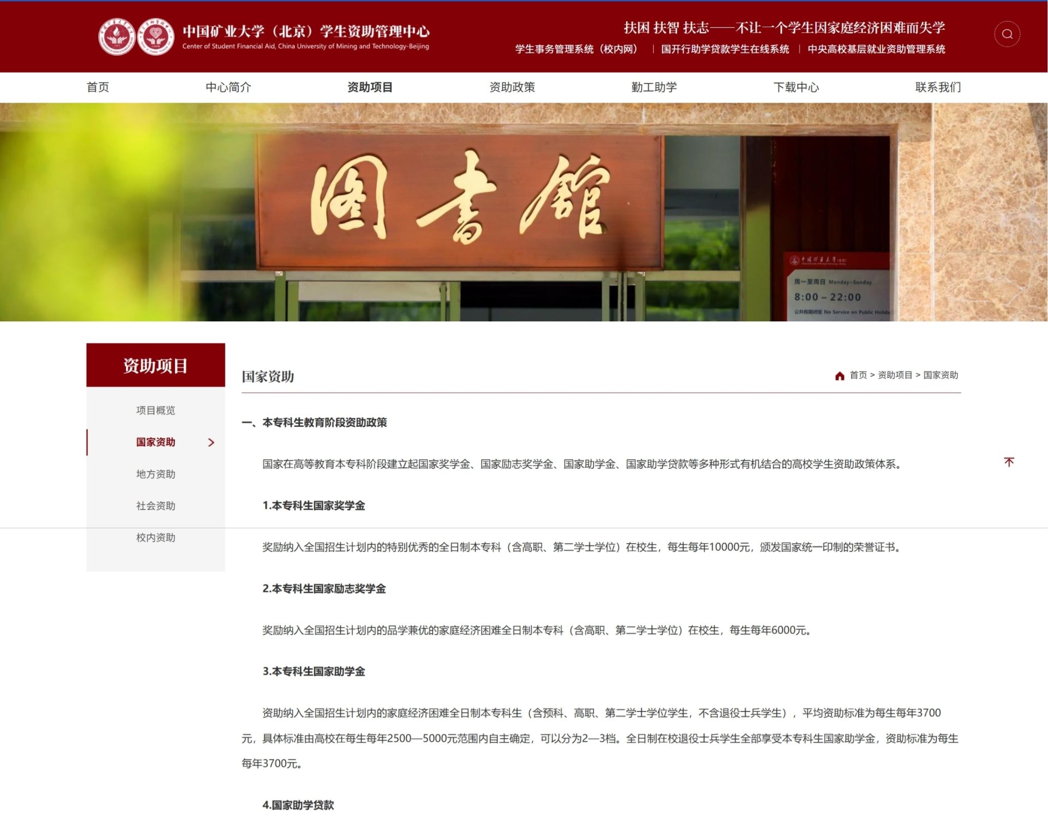 工作前移,资助政策进家门。学校多措并举,努力帮助家庭经济困难新生充分了解国家资助政策,解除学生后顾之忧。一是资助政策进家门,随新生录取通知书邮寄了《中国矿业大学(北京)学生资助政策简介》手册及《中国矿业大学(北京)家庭经济困难学生认定申请表》,保障每位新生及家长应知尽知资助政策;二是假期开通24小时资助热线电话,全方位为新生及家长答疑解惑;三是通过学校网页、官方微信、迎新系统等多种媒介宣传资助政策,详细介绍学校的资助项目、资助流程,打消家庭经济困难新生的顾虑。