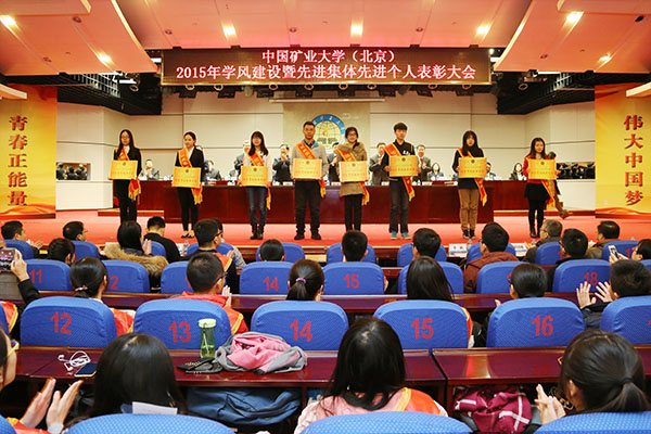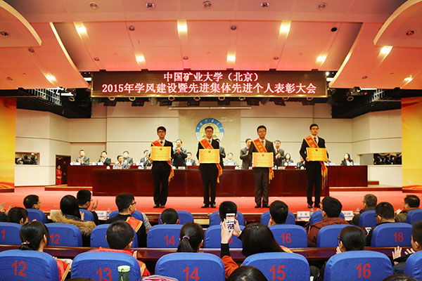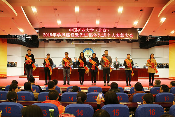 为进一步树立先进典型,推动优良学风建设,营造良好的育人氛围,11月24日下午,我校在科技会堂隆重举行2015年学风建设暨先进集体先进个人表彰大会,对在2014-2015学年度学风建设中表现突出的先进集体和先进个人进行表彰。校长杨仁树,副校长范迅、姜耀东、王忠强,校党委副书记朱书全,校党委副书记、纪委书记张志坤,校长助理范中启出席大会并在主席台就坐。各学院、党政机关部门负责人,各类先进集体、先进个人获奖代表和900余名师生参加了大会。大会由朱书全主持。