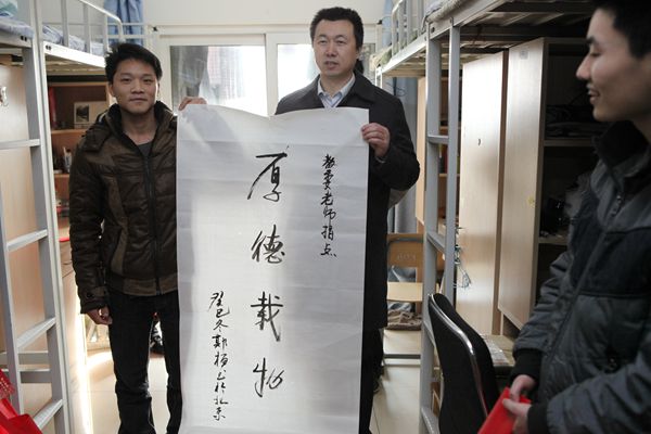 留校学生感谢北京市领导的关怀和关心,并表示一定不辜负领导期望,珍惜机会,好好学习,好好锻炼,不断充实自己。一位学生还向张永凯呈上写有厚德载物的作品,衷心感谢领导的关怀。