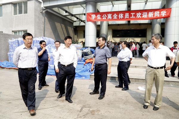 9月15、16日,校党委书记徐孝民,校长杨仁树,副校长范迅、姜耀东、王忠强,校党委副书记朱书全,校党委副书记、纪委书记张志坤,校长助理范中启,来到迎新现场,看望现场工作人员,并与学生家长和新生亲切交谈,聆听新生的入学感受和家长对学校的意见、建议。9月15日晚,副校长范迅、校党委副书记朱书全还深入新生宿舍,了解他们的生活和住宿情况。校领导要求有关工作人员,做好服务工作,帮助新生尽快适应校园环境和大学生活。