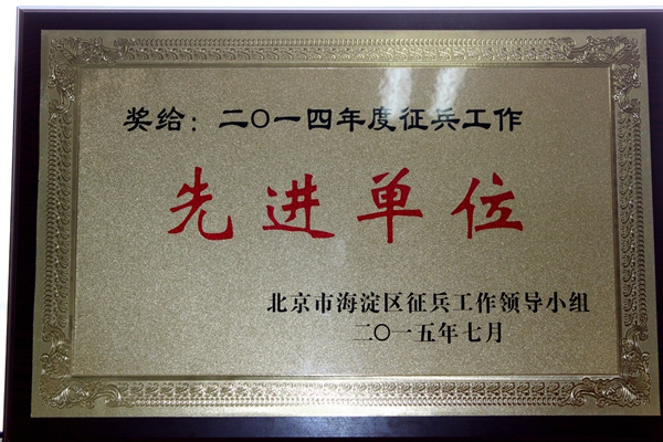 7月8日上午,海淀区2015年夏秋季征兵工作动员大会在海淀区第一办公区报告厅举行。会上对2014年征兵工作先进单位进行了表彰,我校由于在征兵工作中表现突出,被授评为“海淀区二〇一四年度征兵工作先进单位”。