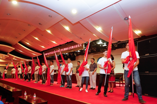 朱书全宣布我校2015年度大学生暑期社会实践团队出征,并为学校重点团队代表授旗。党委宣传部、党委学生工作部相关负责人,各学院主管学生工作的党委(总支)书记、副书记、副院长等出席活动。