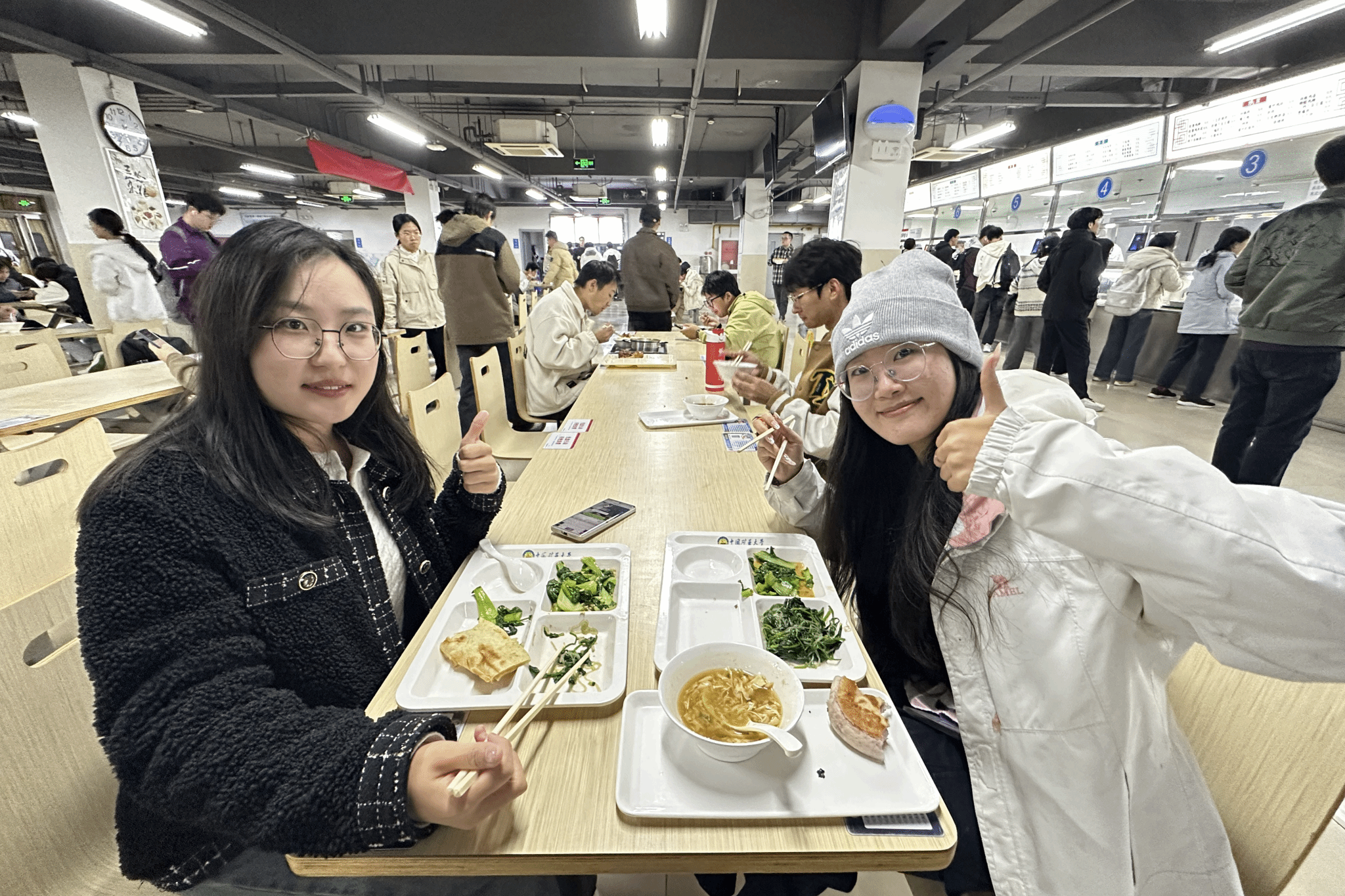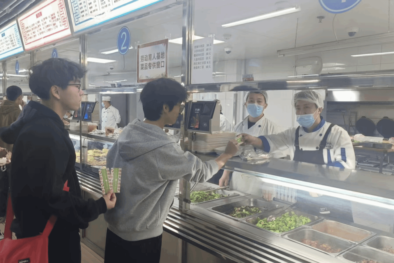 下午5点,手持餐券的同学们来到食堂。当餐盘里盛上自己亲手种植的蔬菜,成就感瞬间拉满!“这盘青菜吃起来格外甜!”“原来自己种的菜,吃起来这么有‘故事感’!”同学们一边大快朵颐,一边分享着劳动的喜悦,食堂里充满了烟火气与幸福感。