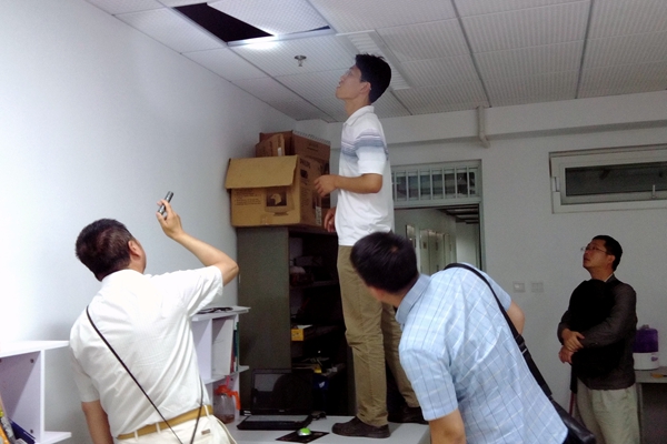 听取汇报后,检查组一行来到逸夫科研实验楼现场,分组对工程土建、电气及水暖等专业进行了详细对口检查和验收。现场检查完毕后,又分别对工程资料进行了详细询问和察看,并对各专业检查结果和意见进行了汇总。