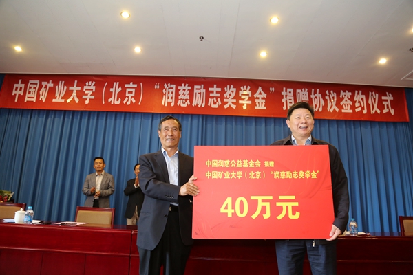 中国润慈公益基金会理事长闫增山先生在致辞中表示,中国矿业大学(北京)办学历史悠久,积淀深厚,十分荣幸能有机会为学校的建设与发展尽绵薄之力,为广大学生成长成才提供更为广泛的平台。他希望校企双方今后进一步拓宽合作渠道,提高合作层次,推动人才培养协作,实现互利共赢。