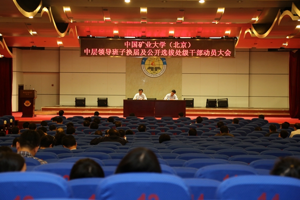 校党委还在会上公布了《中共中国矿业大学(北京)委员会关于调整党政机关等管理部门和教学科研教辅等单位机构设置及处级干部职数的通知》(中矿京党字[2015]14号),《中共中国矿业大学(北京)委员会关于学校中层领导班子换届及公开选拔处级干部的安排意见》(中矿京党字〔2015〕15号)等文件,并下发了有关表格。