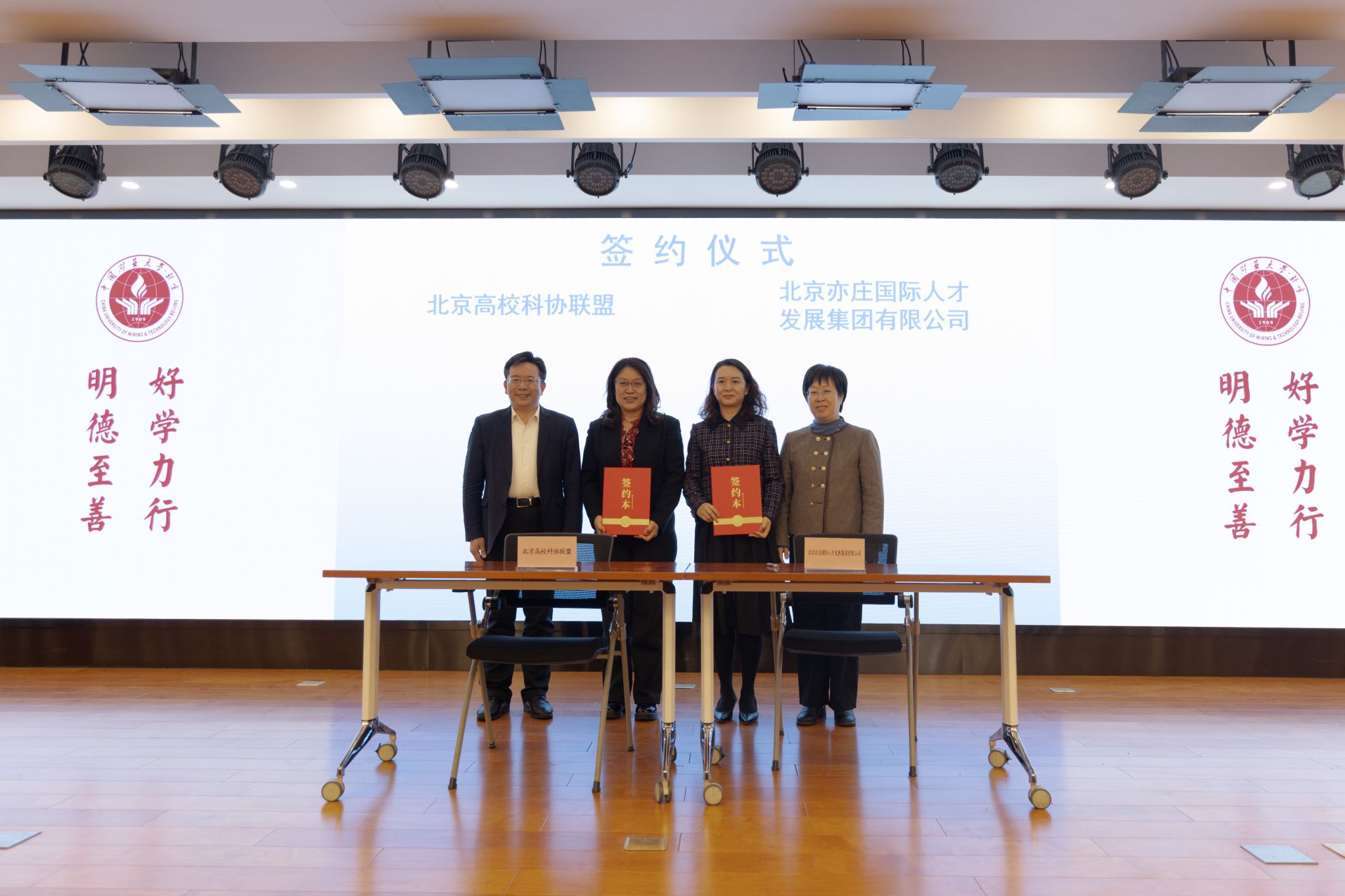 开幕式上,北京高校科协联盟与北京亦庄国际人才发展集团有限公司相关负责人就共同推进科技人才服务签署了合作意向书。