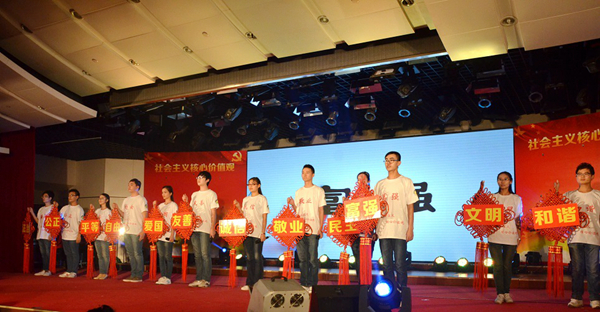 为进一步培育和践行社会主义核心价值观,12月30日晚,“点燃激情•传递梦想”2015年团学系统践行社会主义核心价值观迎新年晚会在科技会堂举行。校党委副书记朱书全,党委宣传部、学生工作处负责人,各学院党委(总支)书记(副书记)、学校离退休老同志以及各院师生共计900余人观看了演出。