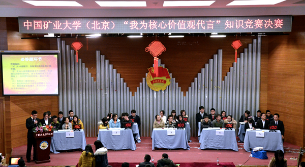 为深入践行社会主义核心价值观,12月21日,由校团委主办、校大学生“中国梦•社会主义核心价值观”学习践行团和管理学院联合承办的“我为核心价值观代言”主题知识竞赛决赛在民族楼407举行。校团委、管理学院、思想政治教育学院相关负责人以及首都兄弟高校大学生学习践行团代表等300余人参加了活动。