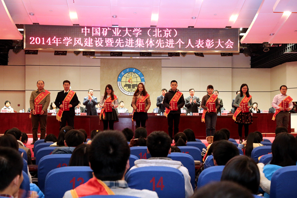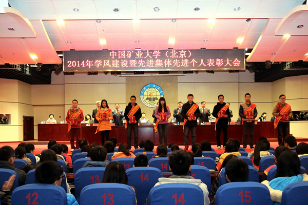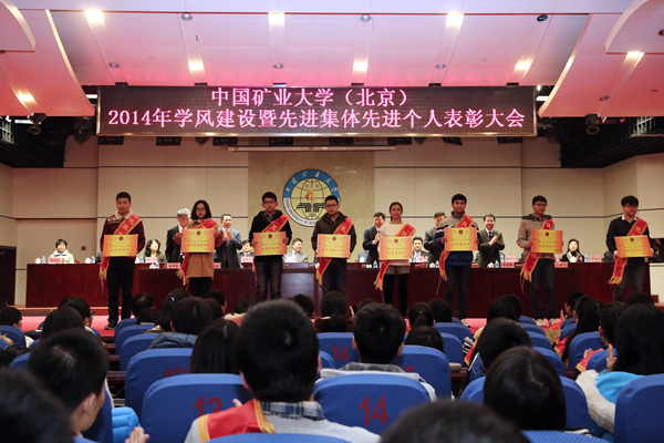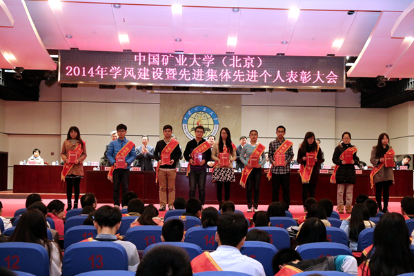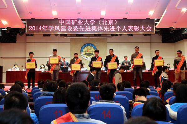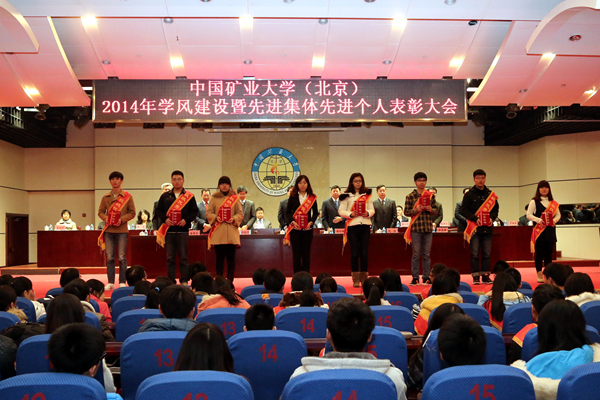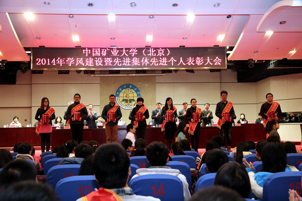 表彰大会前,与会领导和师生一起观看了专题电视片,先进集体和个人的事迹,深深感染和鼓舞着在场师生,会场多次响起热烈的掌声。2013-2014学年度,学校以人才培养为根本任务,积极构建能源工业精英教育教学体系,大力加强学风建设,涌现出一大批团结奋进的优秀群体和全面发展的优秀个人,全校共有59名本科生和133名研究生获得国家奖学金,166人获得国家励志奖学金;10人获得董事会奖学金,10人获得孙越崎奖学金;944人获得优秀研究生奖学金,1697人获得优秀本科生奖学金;共评选出11个优良学风班和4个优良学风标兵班,53个优良学风宿舍和16个优良学风标兵宿舍,10个优秀班级特色活动。还有14名优秀辅导员和11名优秀班主任。本学年,学校组织大学生参加国家及北京市各类学科竞赛13项,行业协会级竞赛15项,共有423人次获得各级各类奖项达197项,这些都集中体现了学校在学风建设上取得的突出成果和我校大学生奋发向上的精神风貌。