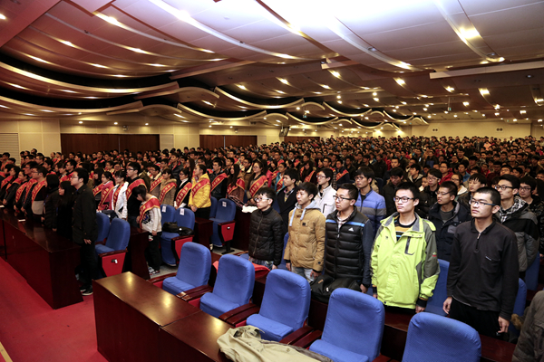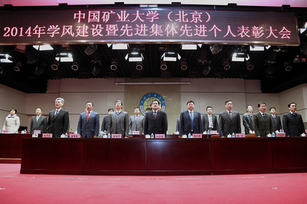 大会在雄壮的国歌声中拉开帷幕。校领导宣读了各类先进表彰名单。副校长孙继平宣读了2013-2014学年度本科生国家奖学金获奖名单,副校长范迅宣读了2013-2014学年度董事会奖学金、孙越崎奖学金、校级优秀本科生、国家励志奖学金和研究生国家奖学金获奖名单,副校长姜耀东宣读了表彰2013—2014学年度优秀班主任和优秀辅导员获奖名单,副校长王忠强宣读了2013—2014学年度优良学风标兵班、优良学风班、向上向善优秀班级特色活动获奖名单。