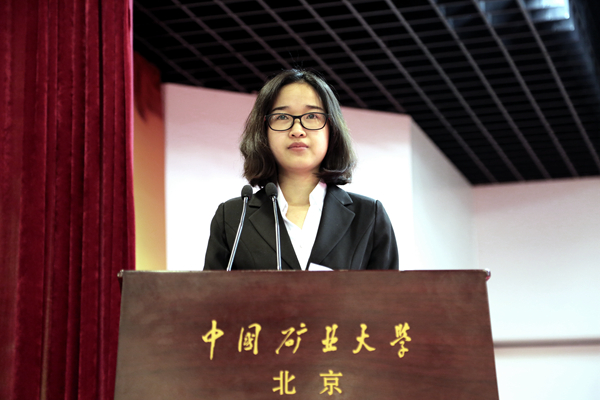 “优良学风标兵班”代表、地球科学与测绘工程学院地质工程专业11级1班李诗棋同学、获奖学生代表、资源与安全工程学院安全2011-2班鲁征同学先后发言,分别讲述了所在班级建设情况和个人成长经历,分享了勤奋、责任和恒心的成功经验,表达了对学校、学院、师生员工的感谢之情。他们表示,将继续秉承矿大优良校风学风,为新百年矿大梦争光添彩。