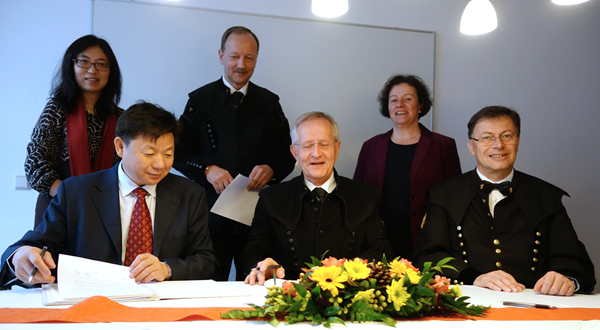 访问德国弗莱贝格工业大学期间,杨仁树会同该校校长Bernd Meyer和奥地利雷奥本矿业大学校长Wilfried Eichlseder签署了三校联合培养研究生项目协议。该项目为我校研究生搭建了更为广阔的出国交流平台,将扩大学校的国际影响力,推动学校国际化的进程。此外,鉴于我校与弗莱贝格工业大学多年来开展的4+2项目成效显著,两校续签了4+2项目协议,并进一步拓展了合作领域,签订了本科生毕业设计项目协议。