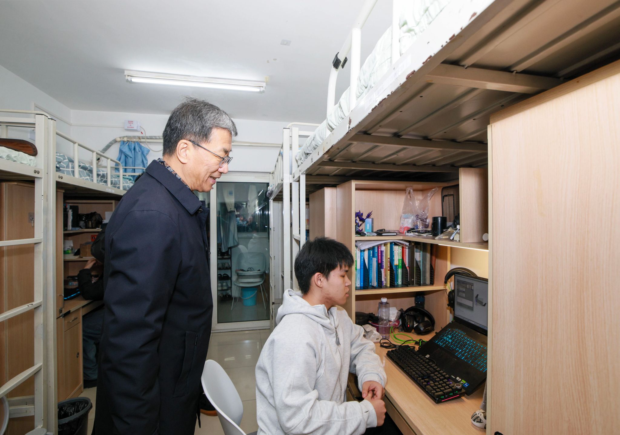 怀进鹏还考察了学生食堂、宿舍,详细了解学生膳食营养、卫生安全、消防安全等情况并与同学们亲切交流。他强调,寒假将至,要统筹好发展和安全,做好学生就业、离校返乡、留校学生关爱等工作,坚决守牢校园安全稳定底线,确保广大师生度过一个安全、温暖、充实的假期。