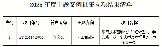 本网讯 近日,教育部学位与研究生教育发展中心公布2025年度主题案例征集立项结果,学校文法学院许文文教授团队申报的《数智技术驱动公共治理转型的中国实践:基于多类型治理场景的主题案例开发》项目成功入选“人工智能+”主题案例,标志着学校在专业学位研究生案例教学领域取得新突破。