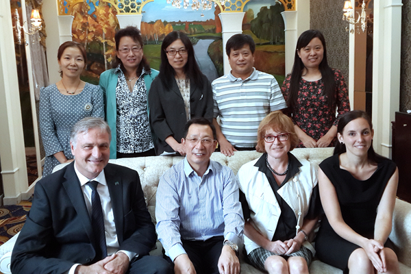 为配合雷奥本矿业大学副校长Peter Moser的此次来访,9月17日,奥地利驻华大使馆科技处参赞Birgit Murr携该处科级官员闫冬青、Katrin Baretschneider访问我校,副校长姜耀东会见了代表团。Peter Moser、Carsten Drebenstedt、管理学院、国际合作与交流处相关人员参加了会谈。会谈中,姜耀东对代表团的来访表示热烈欢迎,并介绍了三校联合培养国际研究生项目的合作背景及其独特的优势。Birgit Murr希望通过多方共同努力,实现项目规划,并展望了该项目的美好前景。