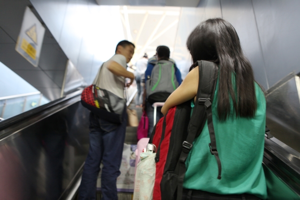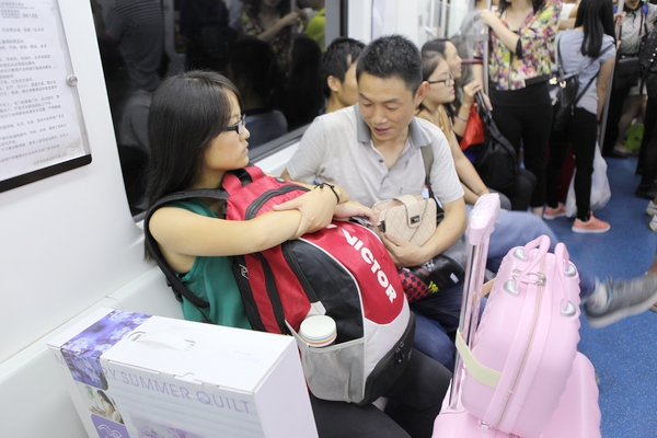 在西直门换乘13号线的时候,父亲想继续把背包背着,但是楚佩这次怎么也不肯放手。
