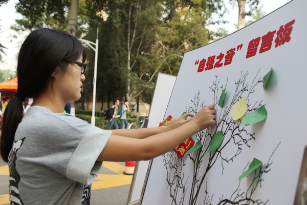 在“绿色通道”的留言板上,楚佩郑重地贴上了自己的心声。留言板上画的是一棵正在茁壮成长的大树。