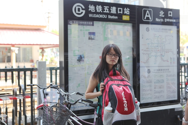 终于出了地铁站,楚佩在站牌旁拍照,或许此刻的她还没有意识到,“五道口”这个地名将会伴随她走过四年的大学生活。
