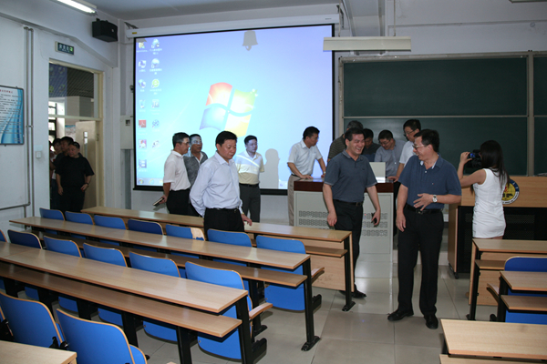 校领导首先来到教学实验楼,实地考察了教学环境和教学设施,重点了解了新安装的视频教学设备。在听取教室管理人员汇报后,校领导要求工作人员要全面检查,确保教学正常使用。