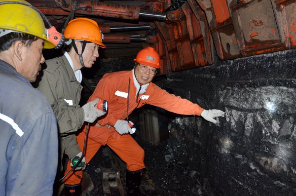 2012年5月何满潮院士在吉林营城煤矿井下工作面现场调研