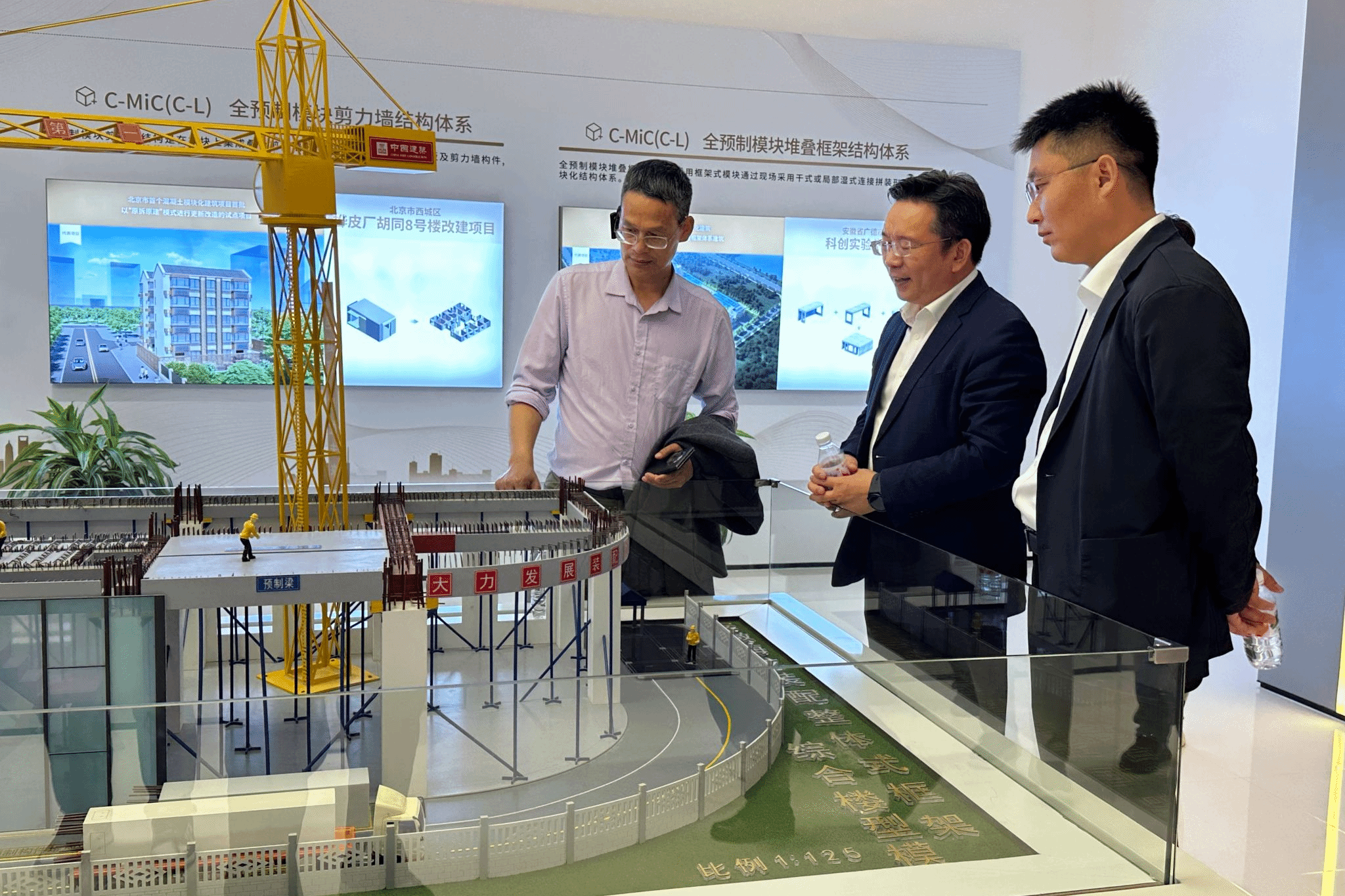 在王琼的陪同下,刘波一行参观了企业“好房子”展厅与模块化建筑实验室、展览大厅、模块化建筑生产线工厂,系统了解中建海龙在绿色建造、智能建造及高品质住宅产品体系方面的最新成果,重点调研了模块化结构设计、智能制造工艺及全流程数字化管控等关键技术的研发进展与设计生产全流程。