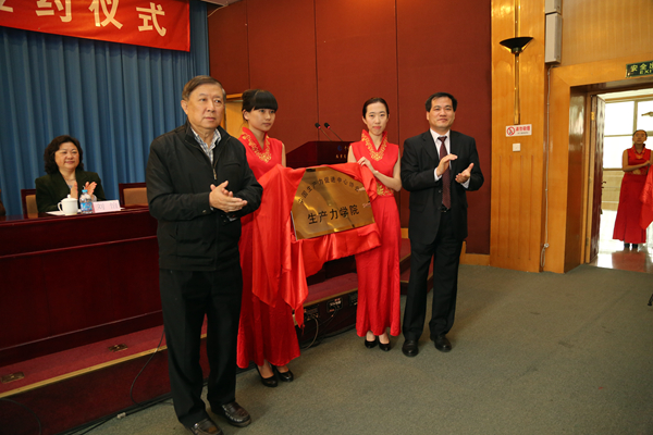 科技部原部长徐冠华、中国矿业大学(北京)党委书记徐孝民共同为中国生产力促进中心协会生产力学院揭牌