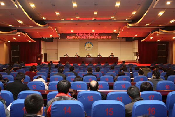 2月25日下午,中国矿业大学(北京)深入开展党的群众路线教育实践活动总结大会在科技会堂四层报告厅隆重举行。教育部党的群众路线教育实践活动直属高校第一督导组组长、西安交通大学原党委书记王文生,督导组副组长、江南大学原党委书记简大钧和教育部考试中心副主任刘立国,以及督导组成员教育部高校学生司本专科招生处调研员周利明、华中农业大学研究生院学位办主任胡文、西南交通大学党委组织部部长助理周志,我校党政领导徐孝民、杨仁树、孙继平、范迅、姜耀东、王忠强、朱书全等出席大会。学校老领导、全体中层干部、教授代表及其他教职工代表等150多人参加大会。