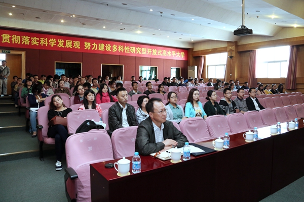 9月26日下午,2013年第二场青年教师培训专题报告会在交流中心二层报告厅举行。北京师范大学高等教育研究所副所长,教育部哲学社会科学重点课题攻关项目首席专家周海涛教授应邀作题为《高校教师职业特点与成长经验》的报告。人事处处长胡喜宽主持,青年教师认真听取报告。