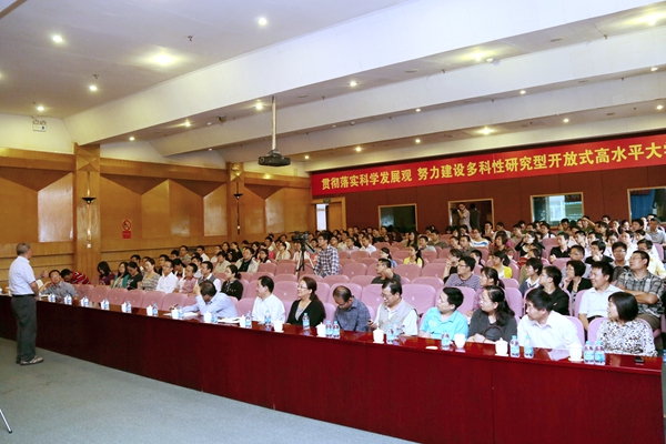 9月13日下午,我校2013年青年教师培训专题报告会在交流中心学术报告厅举行,清华大学博士生导师、全国首届国家级教学名师范钦珊教授应邀作题为《课程教学的创新之路——关于提高教学质量,培养创新精神的几点思考》的报告。副校长范迅主持,人事处处长胡喜宽,各学院主管教学工作副院长及青年教师参加。