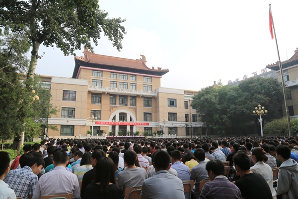 金秋的校园,处处洋溢着青春朝气,处处迸发着勃勃生机。3000名2013级研究生、本科生踏上了百年矿大这片热土,开始了崭新的人生征程。9月6日上午,学校在民族楼广场隆重举行2013级新生开学典礼。校党委书记杨仁树,副校长孙继平、范迅、姜耀东、王忠强,校党委副书记朱书全出席典礼并在主席台前排就座,各学院以及党政机关有关部门负责人在主席台就坐。开学典礼由朱书全主持。