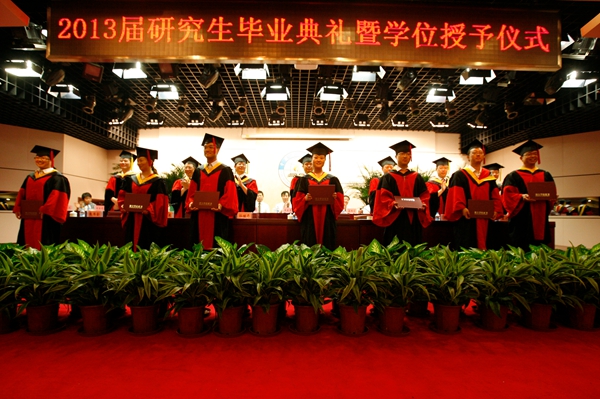 6月27日上午,我校221名博士、1356名硕士汇聚在科技会堂四层报告厅,参加2013届研究生毕业典礼暨学位授予仪式。