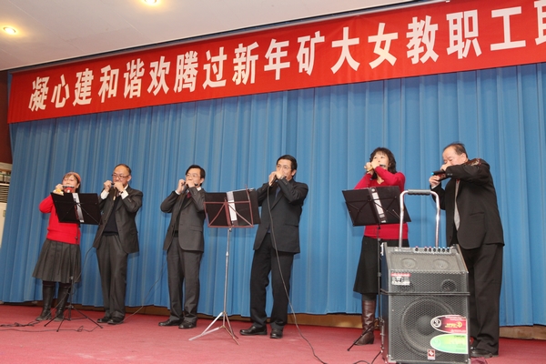 联欢会上,女教职工舞蹈协会表演的劲爆动感的《江南style》、《肚皮舞》和婉转优雅的《雪域阳光》,以及化环学院工会带来的交谊舞《爱的天堂》,让全场观众大饱眼福。《最炫民族风》、《红梅花儿开》、《天蓝蓝》和《青苹果乐园》等诸多大家耳熟能详的歌曲经矿大人的传唱,又别是一番风味。小品《矿大今昔》展现了学校这些年来发生的巨大变化,表达了矿大师生强烈的爱校情怀。后勤工会带来的口琴表演《在希望的田野上》和《巡逻兵》使全场观众陶醉其间,两曲终了后应观众们的要求又演奏了一首俄罗斯民歌,赢得了热烈掌声。在节目间隙,还穿插进行了抽奖环节以及抢椅子、猜价格等游戏。现场气氛热烈,掌声笑声阵阵,汇成了一片欢乐的海洋。
