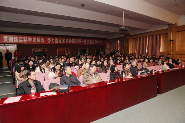 为进一步丰富我校女教职工生活,营造良好的校园文化氛围,增进友谊,凝聚人心,1月9日下午,由校工会女教职工委员会主办的“凝心建和谐欢腾过新年”女教职工联欢会在国际交流中心学术报告厅举行。校党委副书记、校工会主席朱书全出席联欢会并致辞,校工会、有关部门和学院负责人、学校女教职工等200余人参加了联欢会。