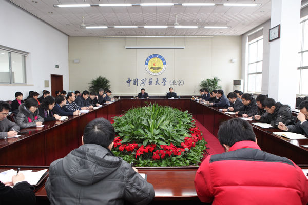 12月14日下午,学校在1号办公楼第一会议室召开各学院、各单位负责人会议,传达学习中央关于改进工作作风、密切联系群众的有关规定及实施细则等文件精神。校党政领导杨仁树、乔建永、孙继平、范迅、姜耀东、王忠强、朱书全出席会议。校长乔建永主持会议。