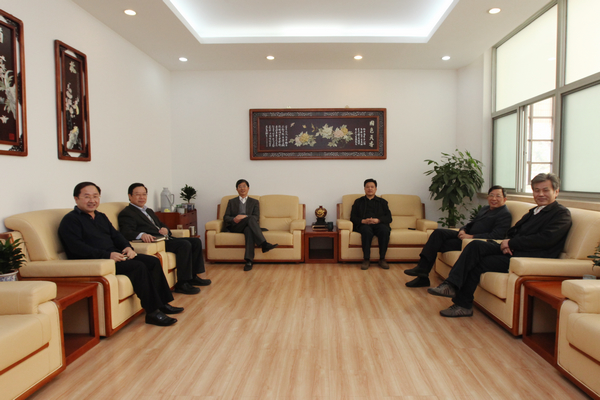 我校党委政治理论中心组成员乔建永、孙继平、范迅、姜耀东、朱书全在一号办公楼接待室集体收看了见面实况。
