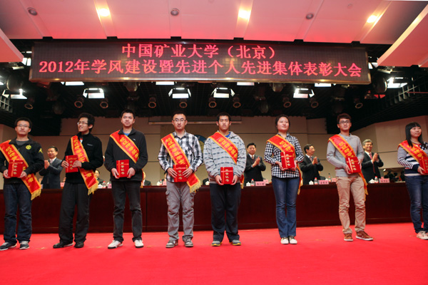 会上,表彰了2011-2012学年度63名国家奖学金获得者、153名国家励志奖学金获得者、1578名优秀本科生、734名优秀研究生,24个先进班集体和62个文明宿舍。校领导向他们颁发了获奖证书。