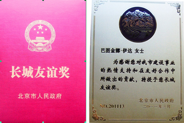 2012年3月,北京市人民政府授予巴图金娜教授2011年度“长城友谊奖”