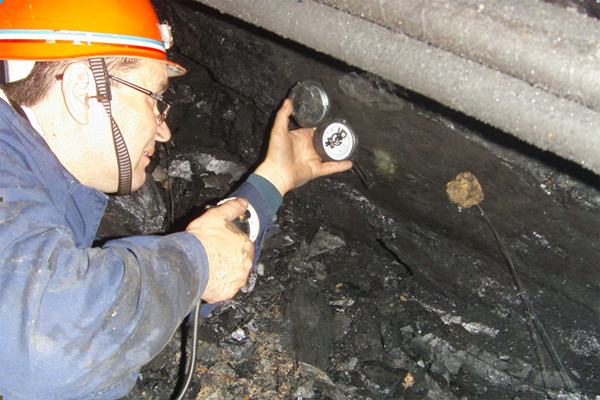 2011年1月,外专项目组专家巴图金教授在华丰井下现场测取数据。