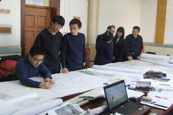 2011年1月,课题组在华丰煤矿进行分析计算与绘图作业。巴图金娜教授指导我校09级硕士研究生王国龙(左3),该生完成题为“华丰煤矿深部冲击地压的区域动力规划及其方案优化”的学位论文,于2012年7月毕业。