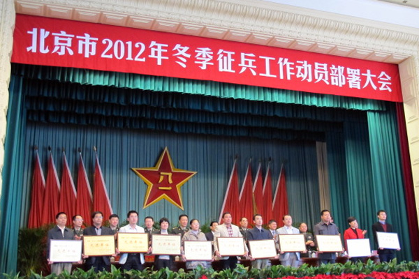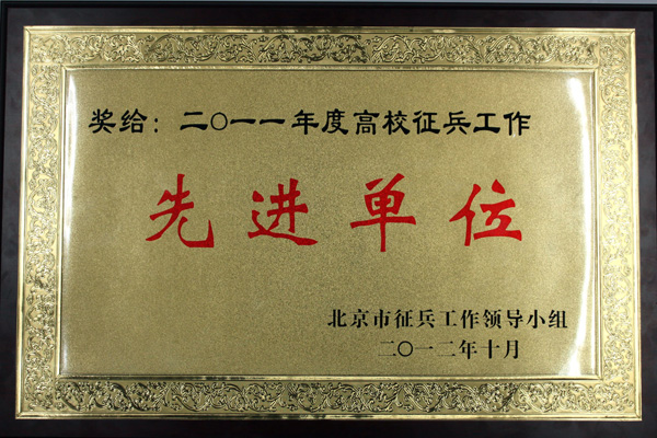 10月17日上午,北京市2012年冬季征兵工作动员部署大会在北京卫戍区礼堂举行。会上对2011年征兵工作先进单位进行了表彰,我校由于在征兵工作中表现突出,被授予“北京市二〇一一年度高校征兵工作先进单位”称号。是获此殊荣的三所教育部直属高校之一。