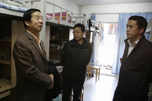 检查组专家考察走访学生宿舍