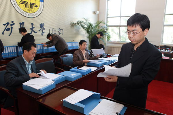 检查组审阅我校五年来党建和思想政治工作支撑材料