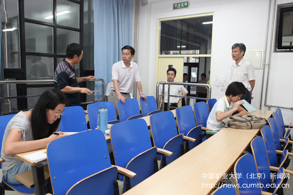 校领导仔细检查了教学楼、电力中控室、图书馆、学生食堂、学生宿舍、学生公寓十号楼地下车库等场所,并了解了暑假期间的安排情况,要求有关人员要以服务学生为宗旨,做好后勤服务工作。校领导重点检查了电力中控制、图书馆等场所的防水情况。雨季来临,校领导要求各单位要密切关注易漏水、怕漏水的地方,未雨绸缪,做好安全防患工作。在图书馆,校领导了解了馆内防暑降温措施,检查了部分出现漏水的角落,并到楼顶进行了检查。在学生食堂,校领导要求要加大食堂环境的建设力度,保证师生饮食卫生,不断提高饭菜质量,确保学生饮食健康。