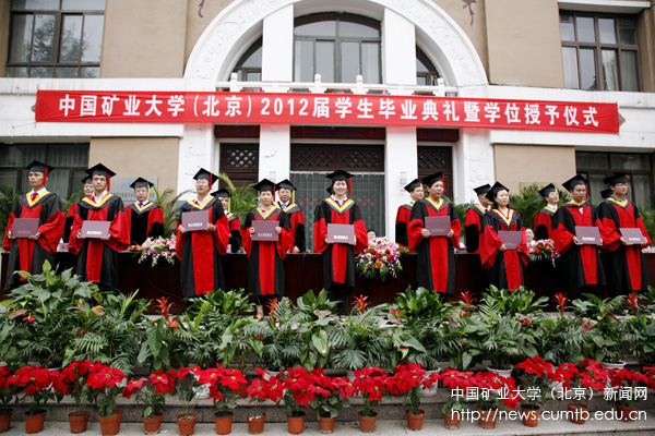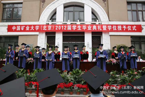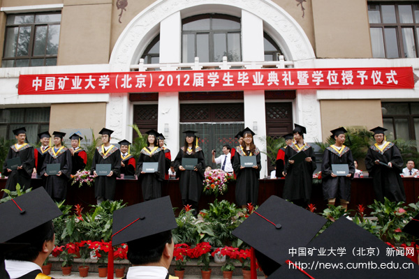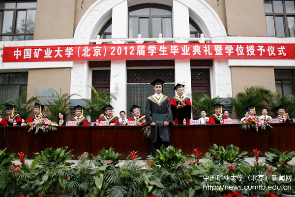 我校2012届毕业生响应国家号召,有235名毕业生到艰苦行业和煤炭生产一线就业,242名毕业生到西部、基层就业。共有57名本科生、55名研究生被评为“2012届优秀毕业生”荣誉称号。出席典礼的校领导、院士分别为获得博士、硕士学位的毕业生颁发学位证书,为获得荣誉的毕业生代表颁发了荣誉证书。