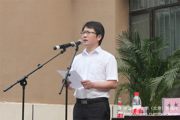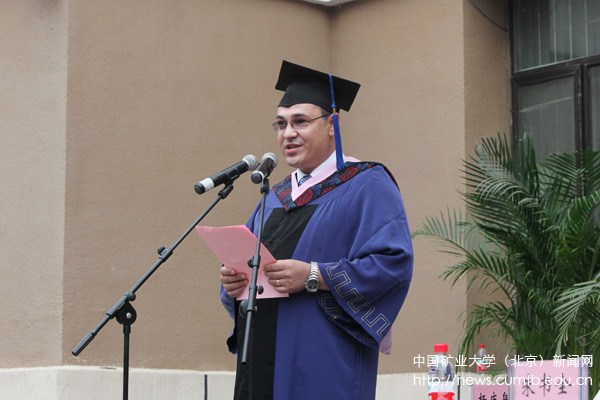 管理学院EMBA俄罗斯学生阿里克谢发言。他表示,选择矿大(北京)是我们不约而同的决定,他庆幸自己的决定,也相信注定的缘分。他感谢矿大(北京)提供了广阔的平台,感谢矿大的老师、亲爱的同学们,和所有的亲人们,并祝愿有更多的精英学生走入矿大(北京)的校门,也祝愿有更多的学生精英学有所成,走出矿大(北京)的校门。