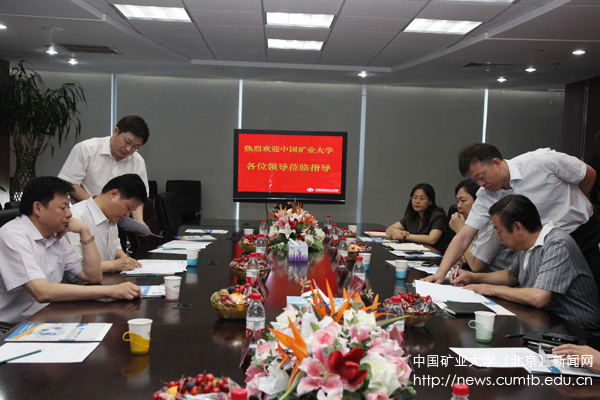 为认真贯彻落实胡锦涛总书记清华大学百年校庆重要讲话精神,根据《教育部、财政部关于实施高等学校创新能力提升计划的意见》等文件精神,我校与中国煤炭科工集团等单位将联合组建“煤炭绿色安全智能开采与洁净利用协同体”。6月12日,我校与中国煤炭科工集团签署“煤炭绿色安全智能开采与洁净利用协同体”合作协议,校党委书记杨仁树,校长乔建永、副校长孙继平,中国煤炭科工集团公司总经理王金华,副总经理王虹、范宝营,副总工程师、科技发展部部长申宝宏出席签署协议仪式。我校党政办公室主任赵亮,科研处副处长钱晓红,中国煤炭科工集团办公室主任董德彪,董事会办公室主任赵国栋,集团党委工作部部长许海霞等参加了仪式。