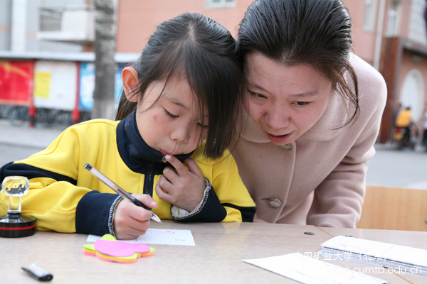 “爱妈妈,就为她写封情书吧”,这句话在矿大的校园内交口相传,同学们对“三行情书”活动表现出了异常的热情,纷纷挑选自己喜欢的明信片,为妈妈、为爸爸、为自己敬爱的人送上一份深深的问候与祝福。你看,最热闹的是,餐厅里打完饭的同学们,一手端着饭盒,一手认真地写明信片;最紧张的是,篮球场上的运动健儿们,趁着中场休息的时间,也不忘过来为自己的妈妈送上一份祝福;最意外的是,路过的外国友人也走过来了,向我们咨询能不能寄到国外给他们的妈妈;最感动的是,有刚会提笔写字的小朋友,也在大学生哥哥姐姐的带动下,给妈妈写了一封只有三个字“妈妈好”的“情书”……