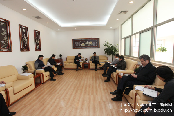 3月26日下午,学校在1号办公楼接待室召开2012年第4次校长办公会议,传达学习贯彻全面提高高等教育质量工作会议精神。校党政领导杨仁树、乔建永、孙继平、范迅、姜耀东、王忠强、朱书全出席会议。校长乔建永主持会议。有关部门负责人列席会议。